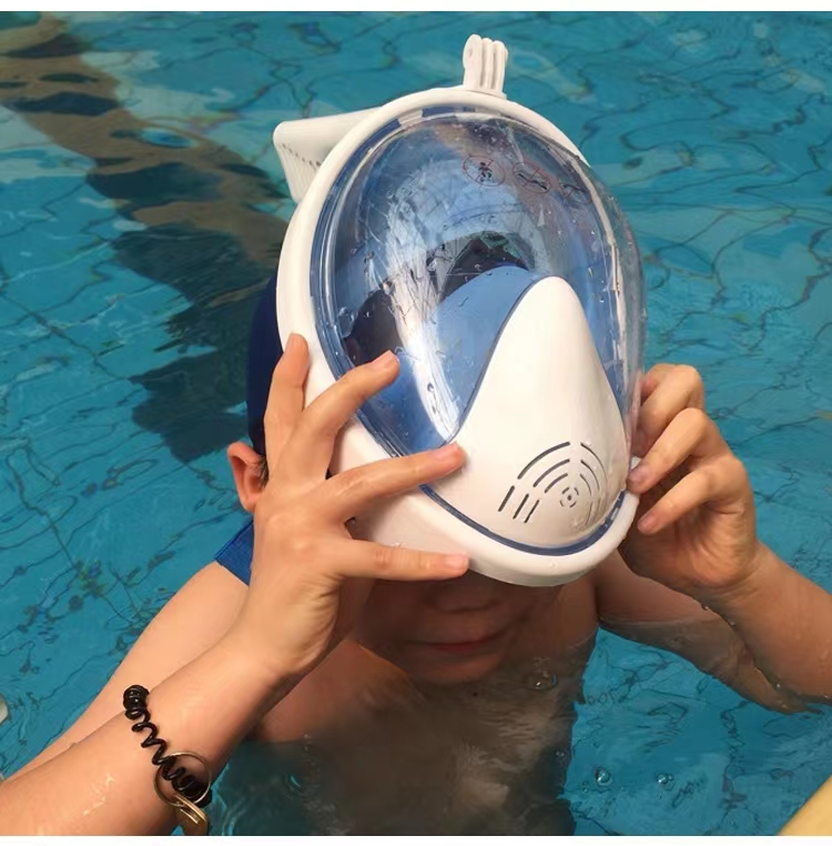 1. Put on the diving mask and place your head in the water to ensure that no water enters the mask.