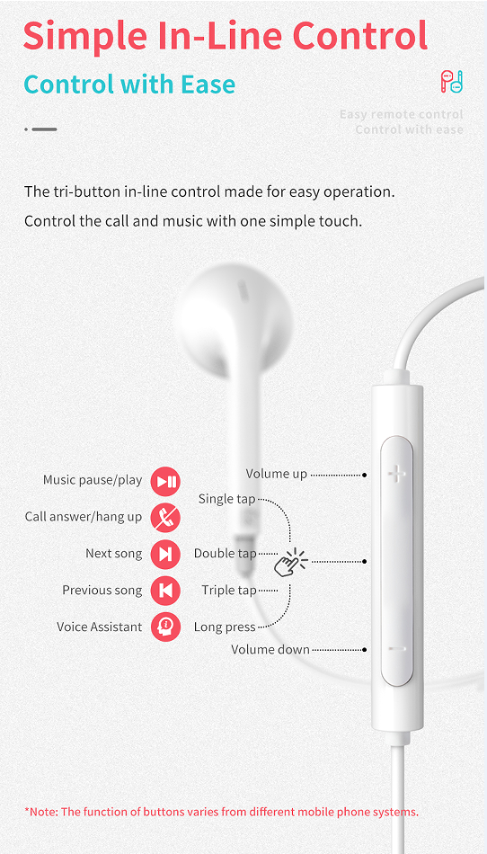 • Three-button inline control for easy operation of music/calls