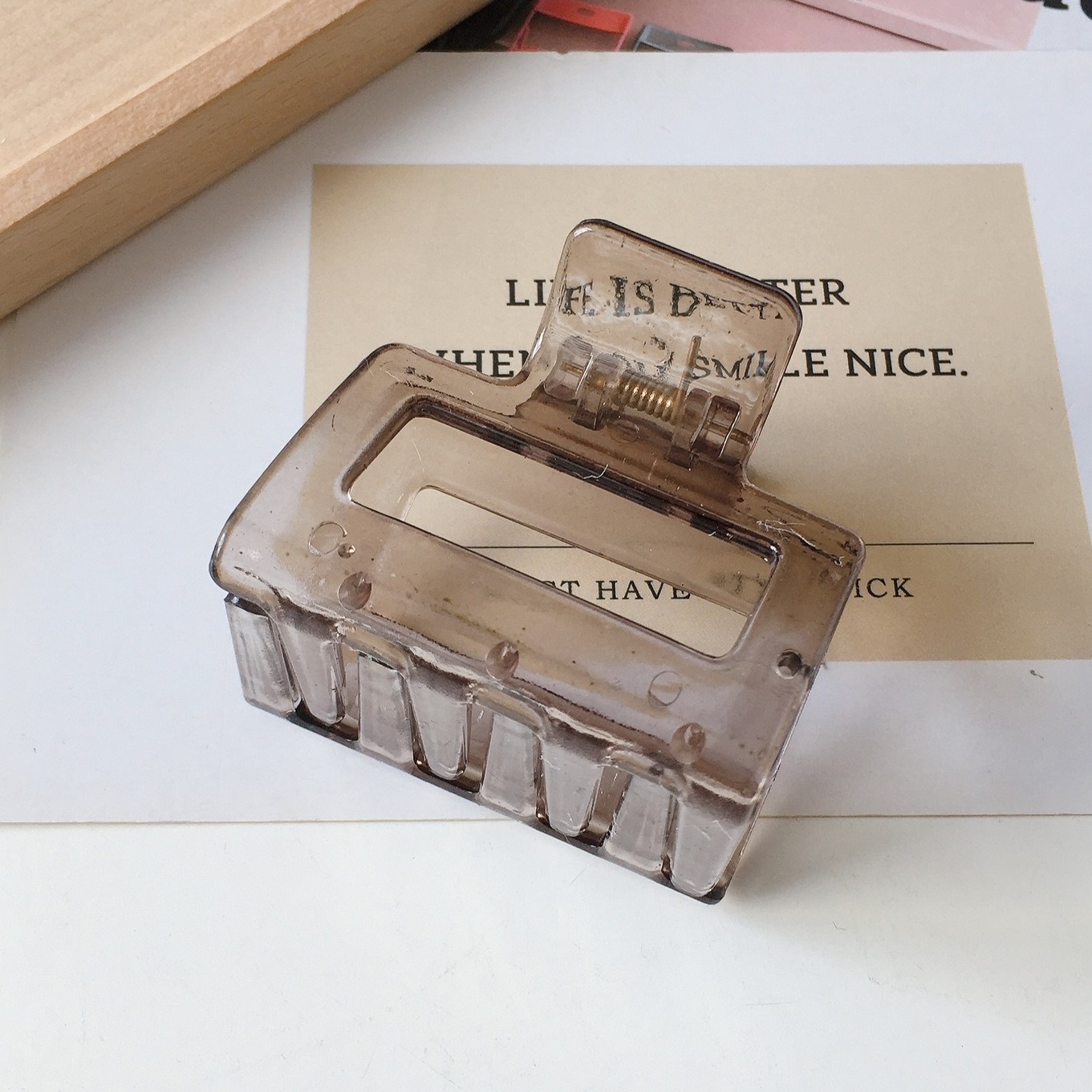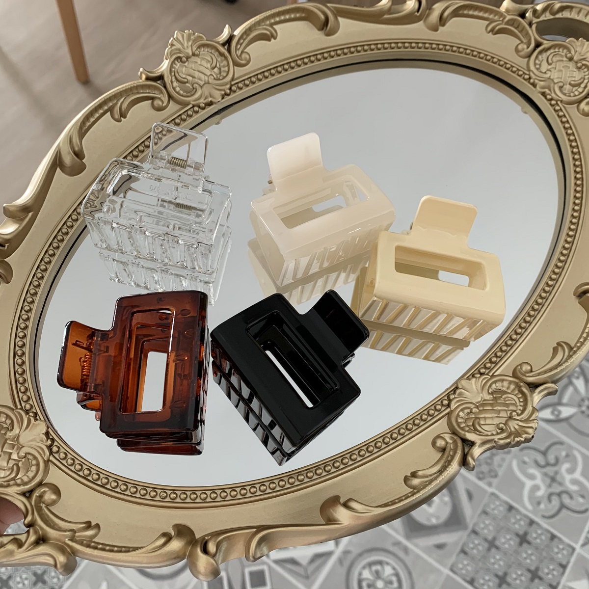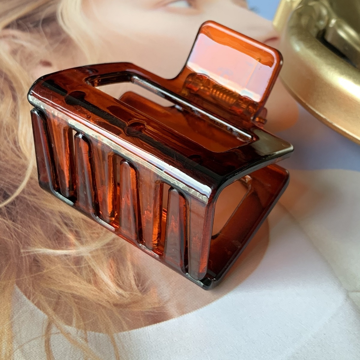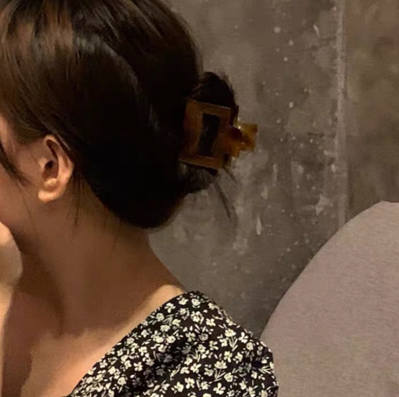 [SG Seller | Light & Tight] 5cm Medium Size Korean Vintage Amber Acrylic Hair Claw Grip Clip, texture hollow ins high-quality hairpin top clip for women
