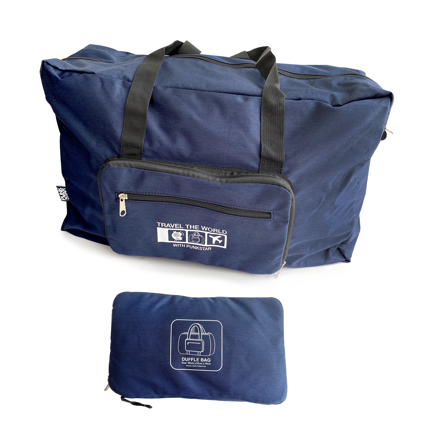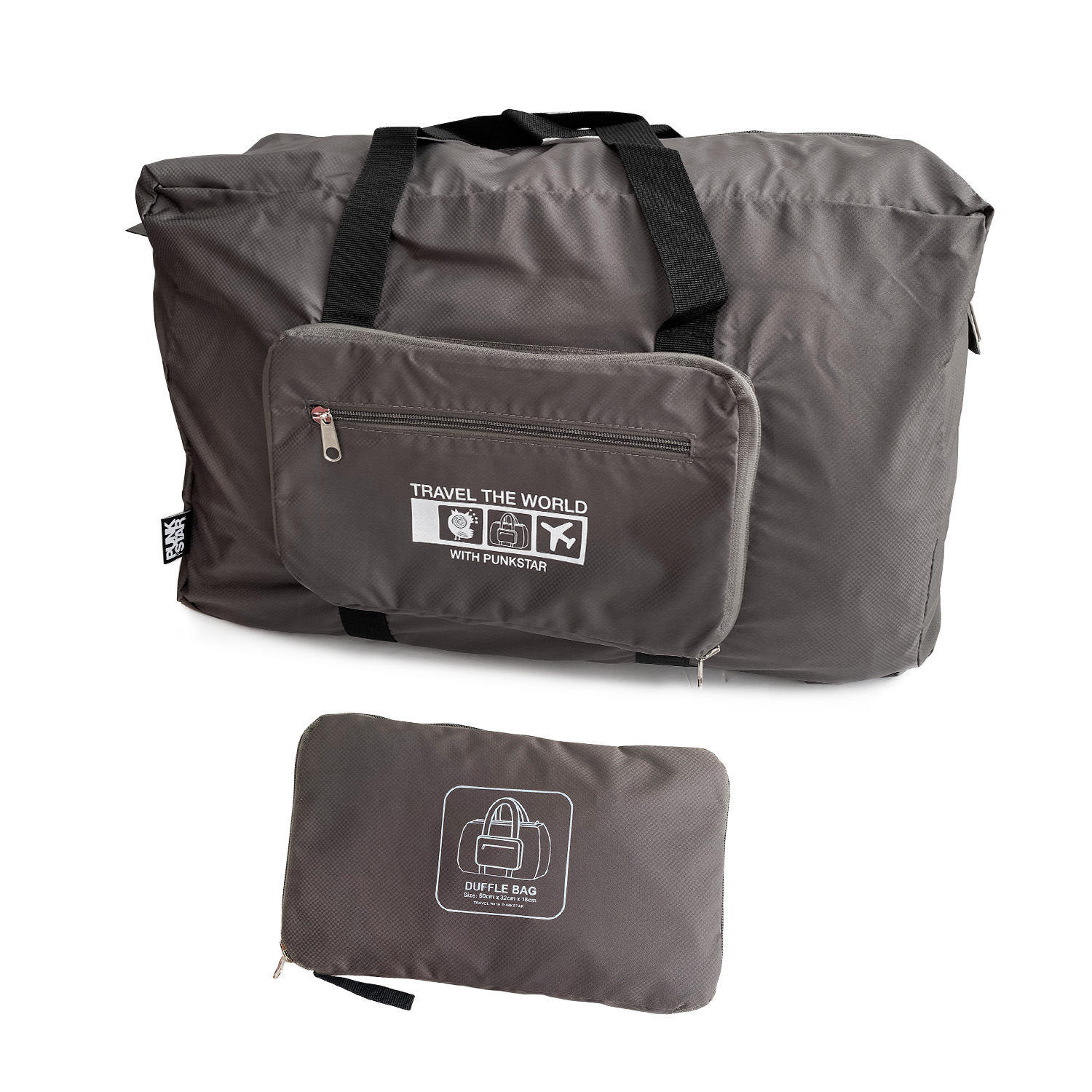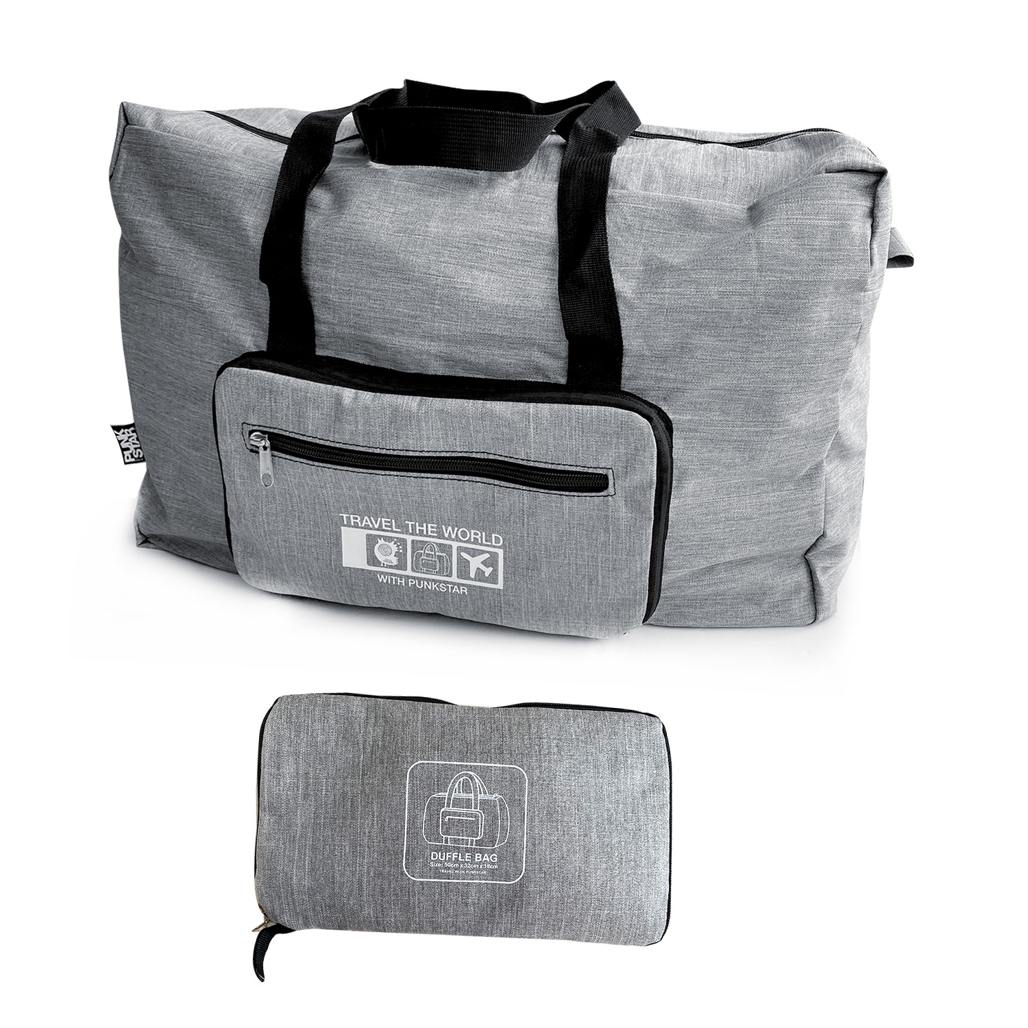 Product Dimensions of unfolded size: 50cm x 32cm x 18cm. PUNKSTAR foldable duffel bag is designed to provide you an organized lightweight travel experience.