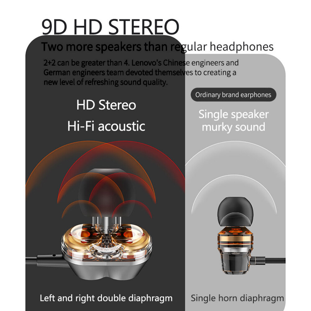 Lenovo HE08 BT 5.0 Neckband Wireless Headphone w/Dual Dynamic + 4 Speakers/Noise Reduction HiFi Stereo Earphone Waterproof Sport Magnetic Headset With Mic Compatible with iOS/Android