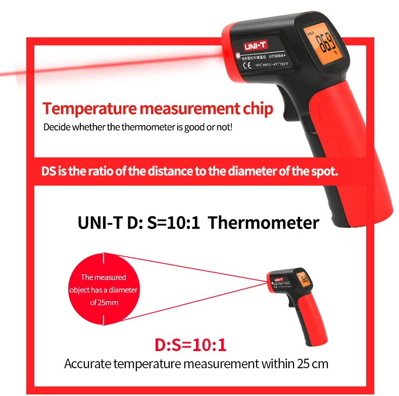 UNI-T UT300A+ Infrared Thermometer -20℃~400℃ Digital Wireless Non-Contact Handheld Temperature Detector