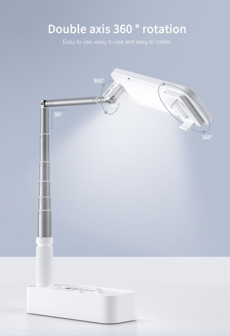 FLOVEME Portable Phone Holder Stand With Wireless Dimmable LED Selfie Fill Light Lamp For Live Video Fill Light Retractable Phone Stand