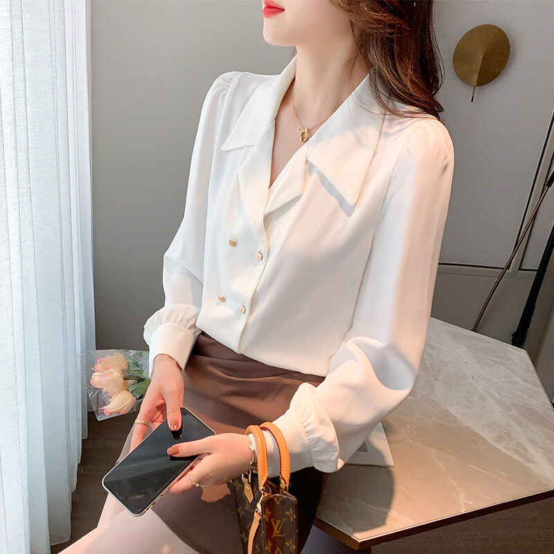 AFEG new Korean fashion loose wild retro chiffon puff sleeve blouse for women