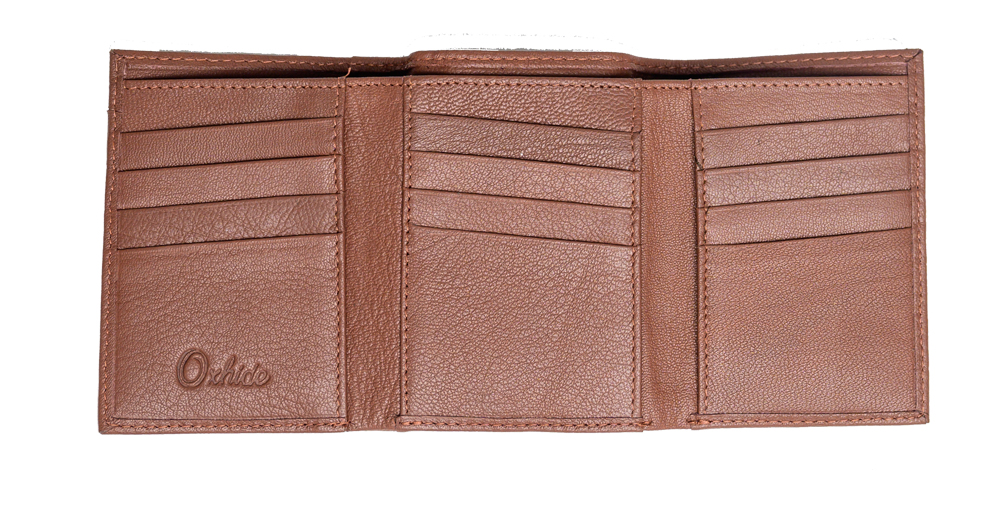 Men's leather trifold wallet in Brown colour. Two cash compartments.