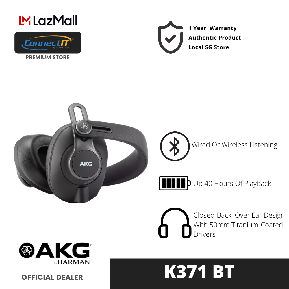 AKG K371 BT Wired/Wireless Closed-Back, Over-Ear, Foldable Dynamic Headphone With Up To 40 Hours of Listening Playback Via Bluetooth 5.0 (1 Year Local Warranty)