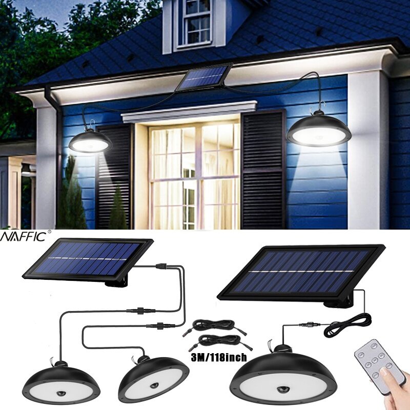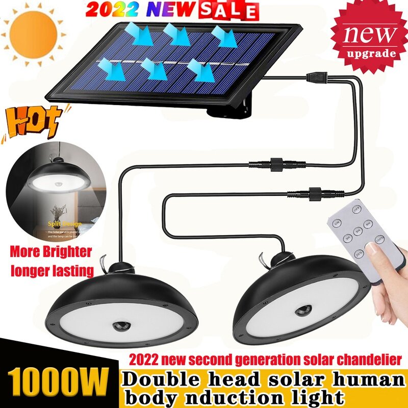 2022 New Second generation NAFFiC more brighter and Longer lasting Double/Single Head Solar Pendant Light Outdoor Indoor Solar Lamp with Line White Lighting for Camping Home Garden Yard.Let it light u