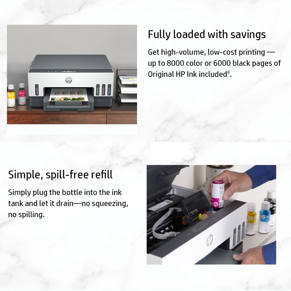 HP Smart Tank 720 Wireless All-in-One Color Inkjet Printer / Print, Copy, Scan / Two-Sided / Duplex / One Year Warranty