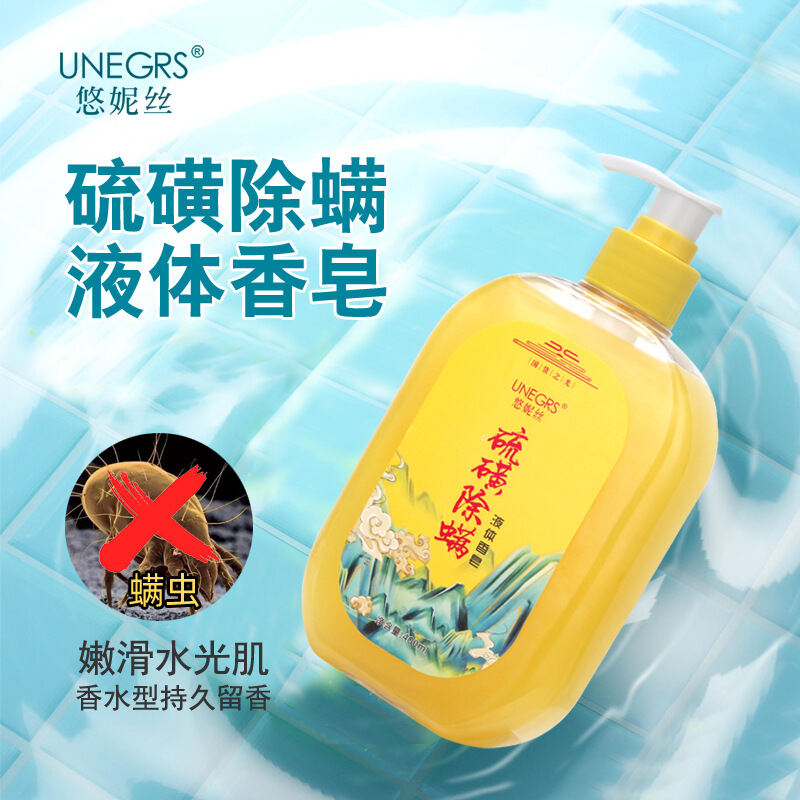 Sulfur Mites Liquid Soap Fragrance Lasting Men's and Women's Face Washing Bath Cleansing Sulfur Antibacterial Soap Shower Gel