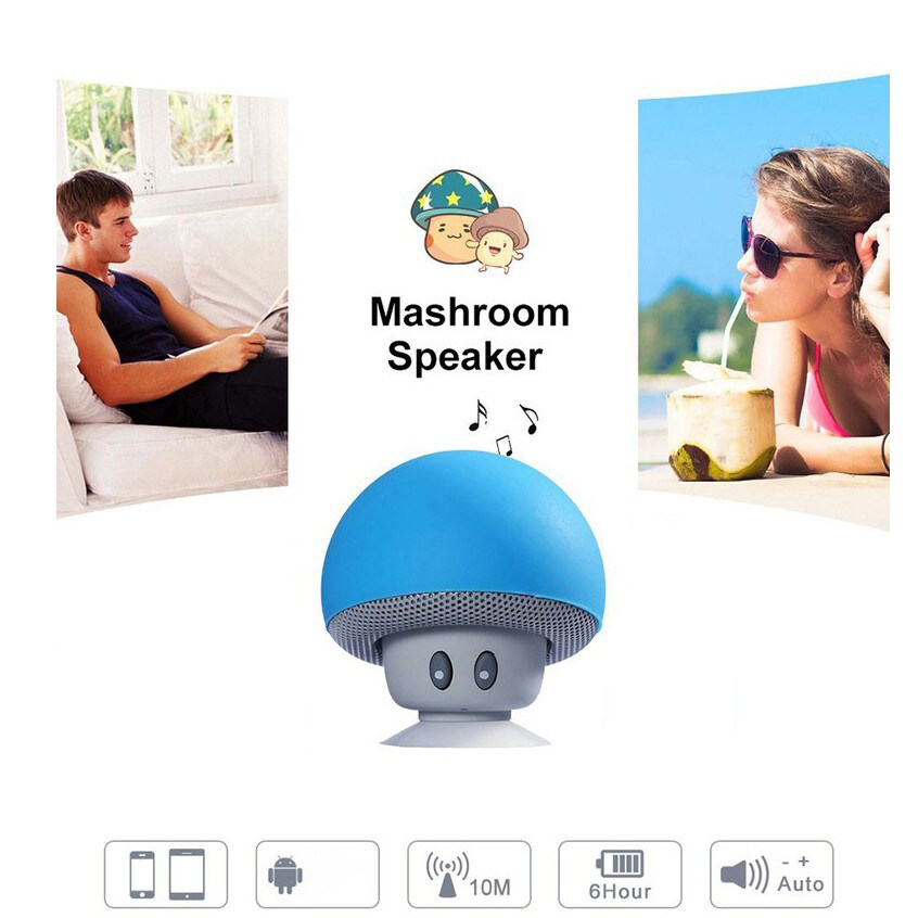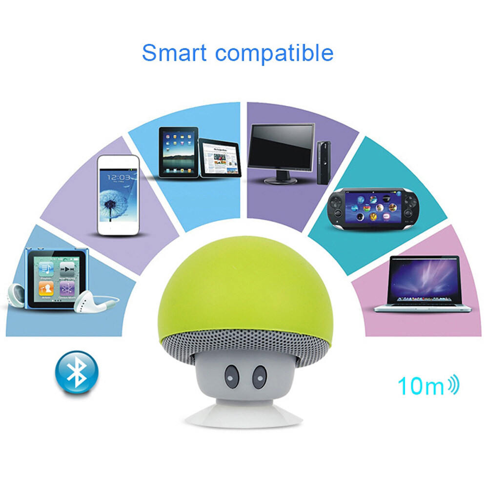 Kebidumei Cute Portable Mini Mushroom Wireless Bluetooth Speaker Stereo Subwoofer Silicone Suction Cup Loudspeaker Phone Holder Audio with Mic