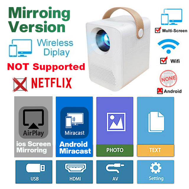 • Resolution 1920x1080p physical resolution • LED projector/built-in battery (optional). •Android 9.0 OS. Pre-installed NETFLIX, YOUTUBE •Support wireless sync display with Android phone /iphone •Support WiFi & Bluetooth function•Support vertical +-40°,Support Horizontal+-40° • Hermetically sealed optical engine engine