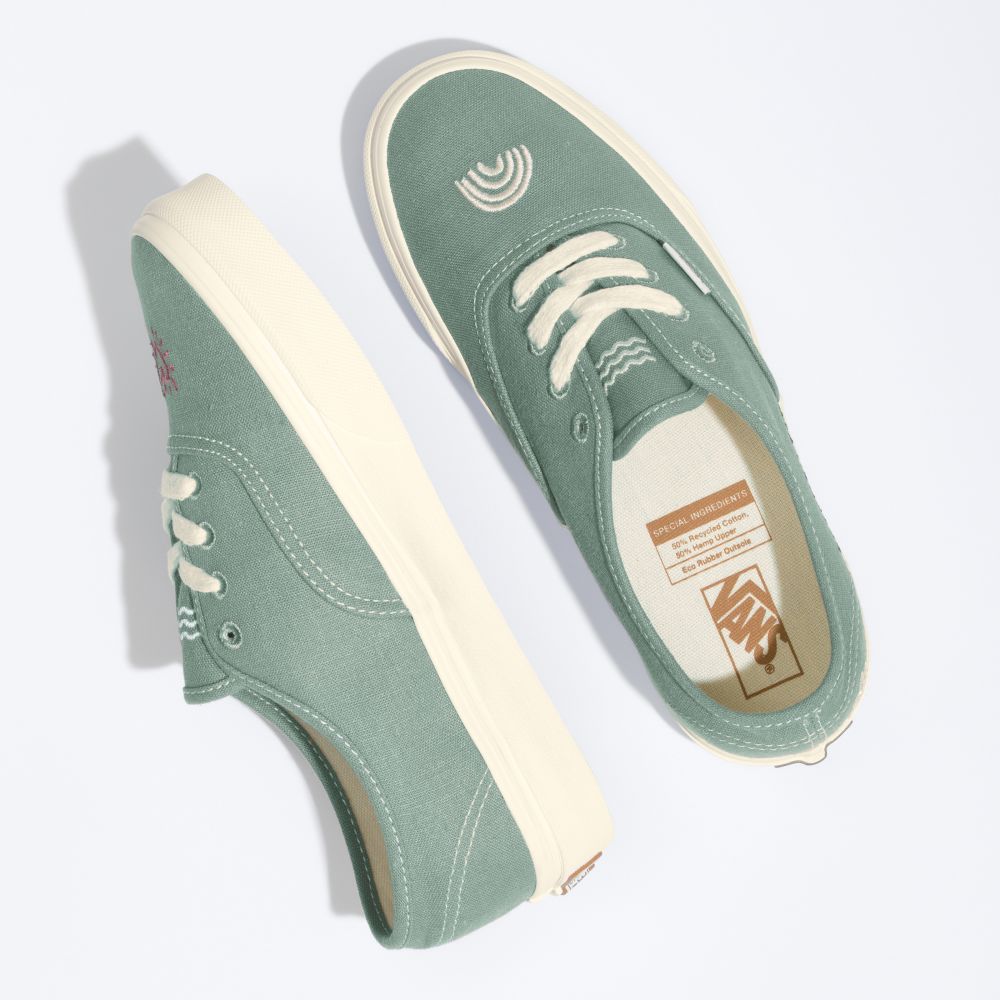 From 100% organically grown cotton canvas uppers to a responsibly sourced natural rubber outsole that still maintains the grip and durability that Vans has been known for since 1966, the Eco Theory Authentic combines environmental consciousness with the classic Vans style you love. This iconic lace-up shoe also includes metal eyelets, renewable jute laces, and embroidery.