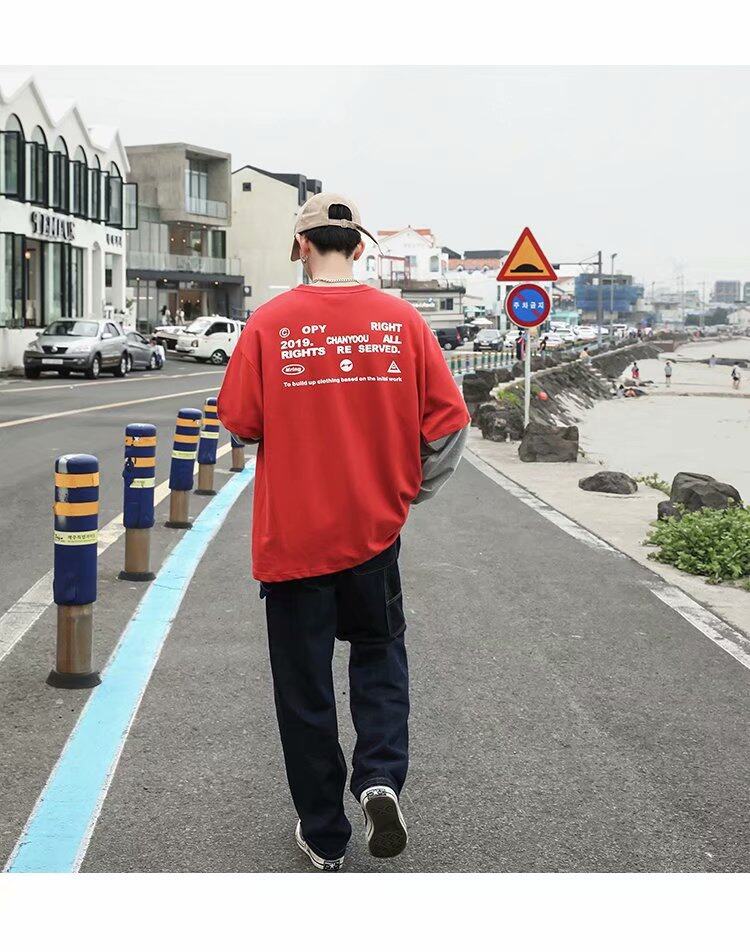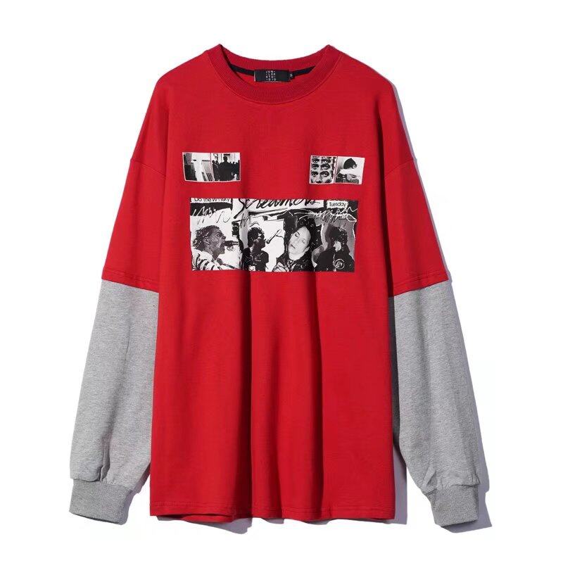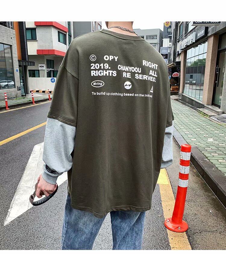 t shirt Men Long Sleeve 2 in 1 Korean Style New Oversize Graphic Print Tee Fashion Tops Loose Casual t-shirt