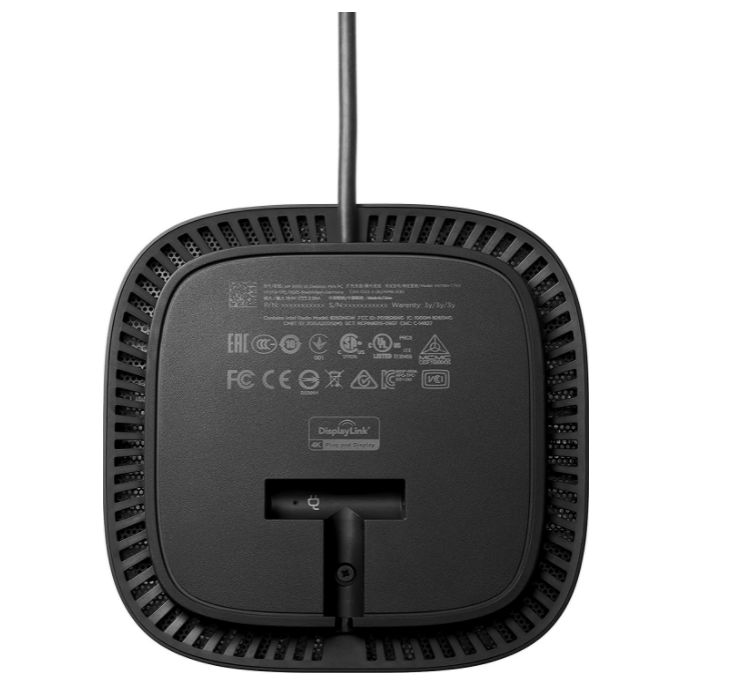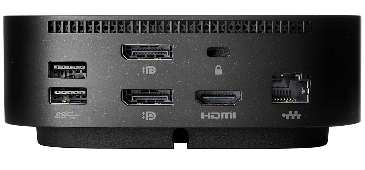 • Ports: Front: 1 USB-C® port with data and power out (15W); 1 USB-C® cable to connect to host system Side: 2 USB 3.0 charging ports; 1 combo audio jack | Back: 2 USB 3.0 charging ports; 2 DisplayPort™ ports; 1 RJ45 port; 1 HDMI 2.0 port; 1 standard lock slot