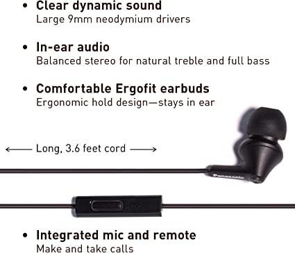 Panasonic RP-HJC120 Wired Earphone | In-Ear Headphone With Volume Control And Microphone