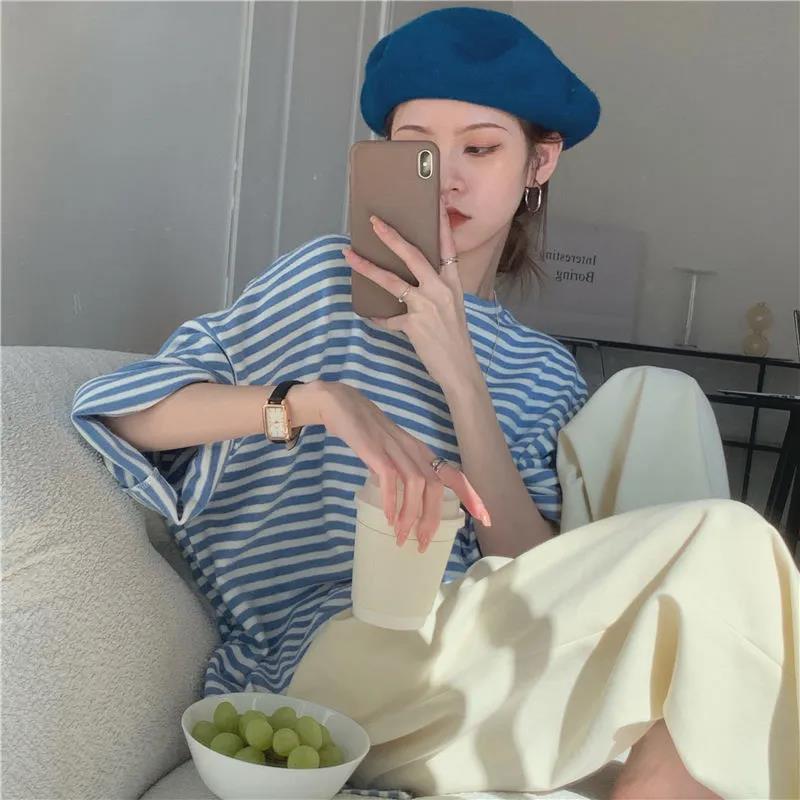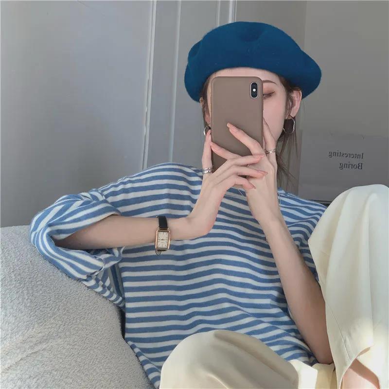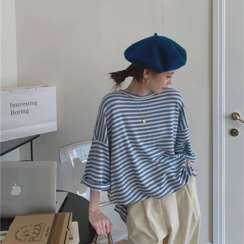 EDQRDQ Womens Striped Tops Plus Size Raglan Shirt 3/4 Sleeve Short Sleeve Striped Crew Neck Tshirt