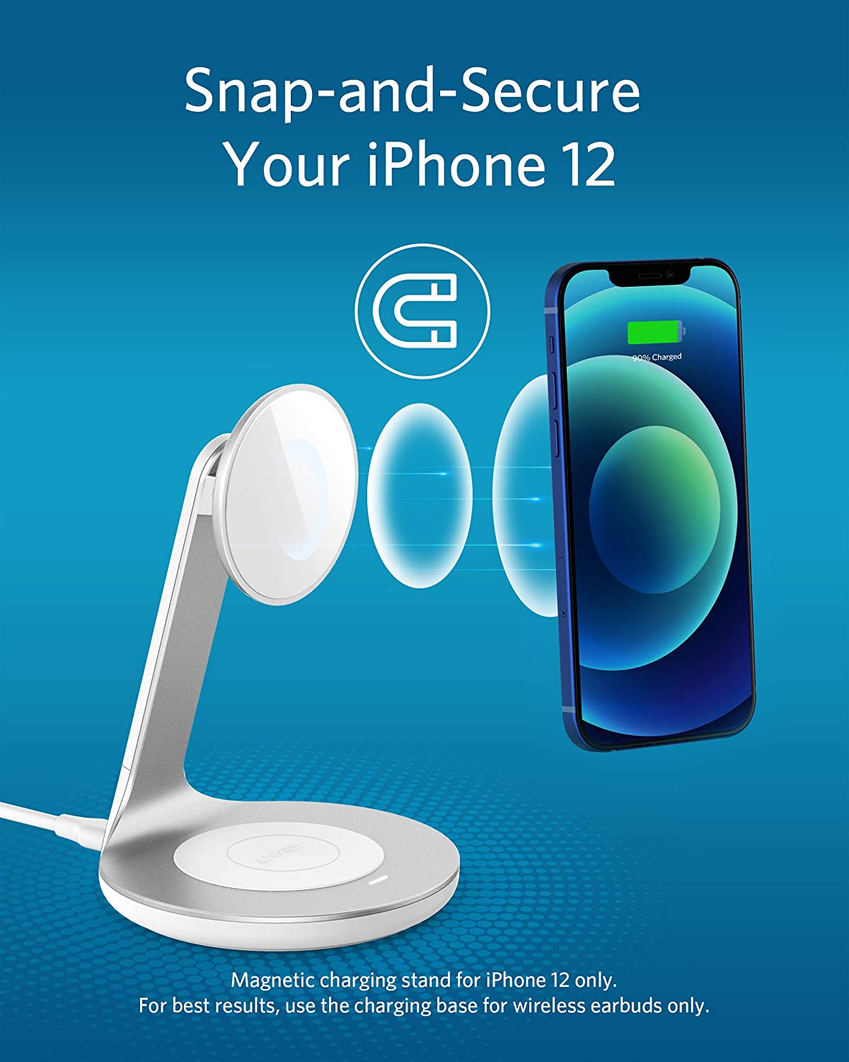 Charge your iPhone 13 on the magnetic stand surface, and use the charging pad below to power up your Qi-compatible earphones like AirPods at the same time.