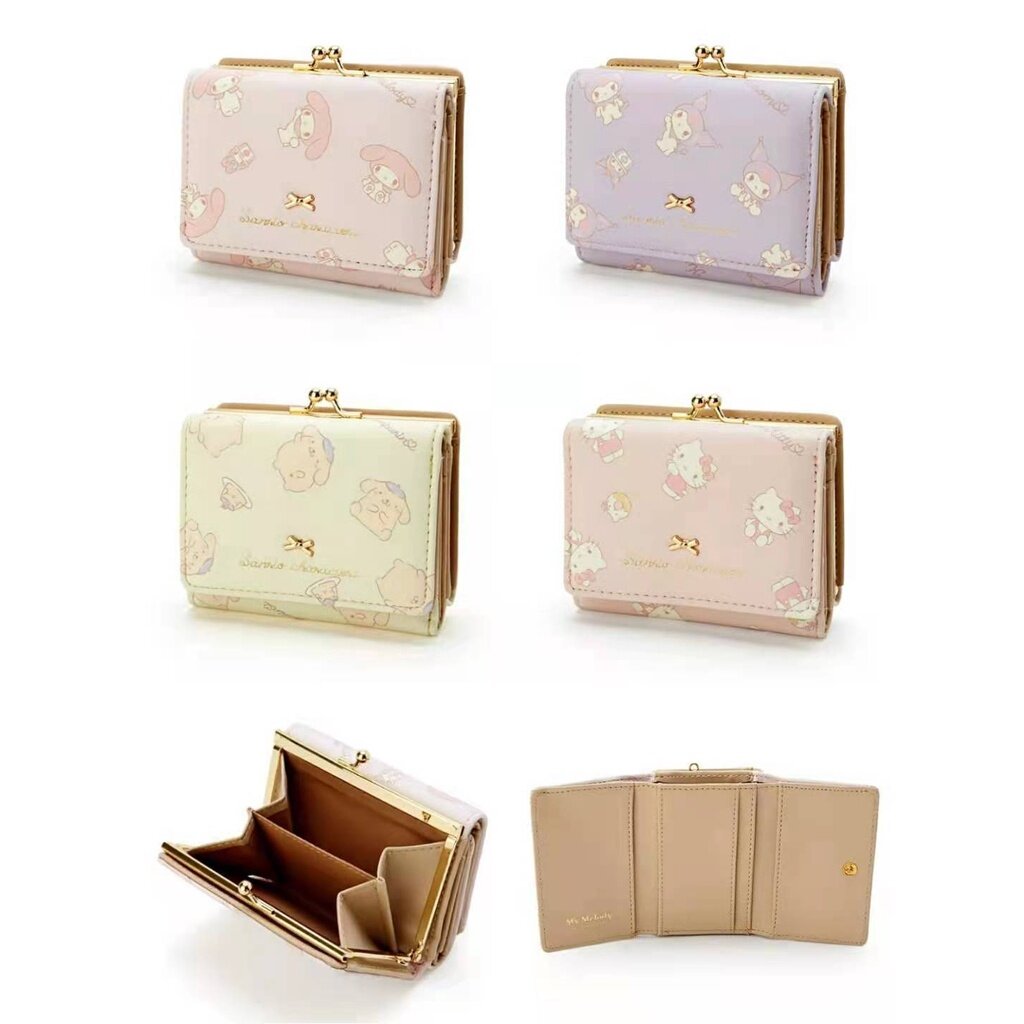 New PU Girl Short Foldable Wallet My Melody Card Holder Kuromi Clutch Bag Zipper Buckle Card Wallet