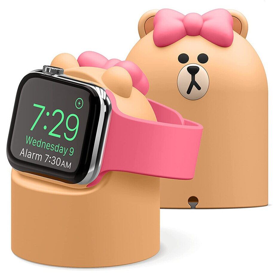 Cute Charger Stand Mount Silicone Duck Bear Dock Holder for Apple Watch Series 7 6 5 4 3 2 SE 44mm/42mm/40mm/38mm Charge Cable