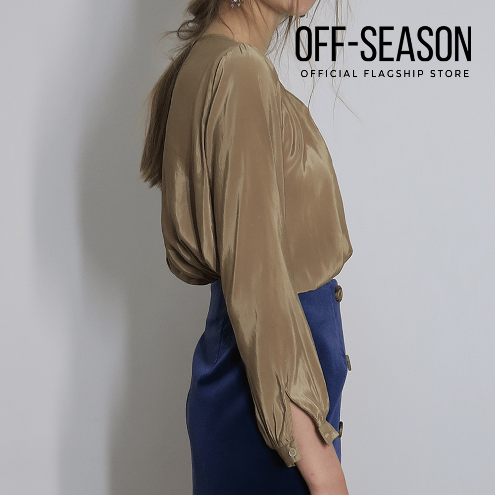 Off-Season Clearance Angie Ann Women Clothing Silk Shirring Blouse in Gold