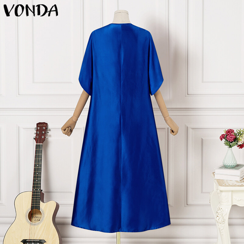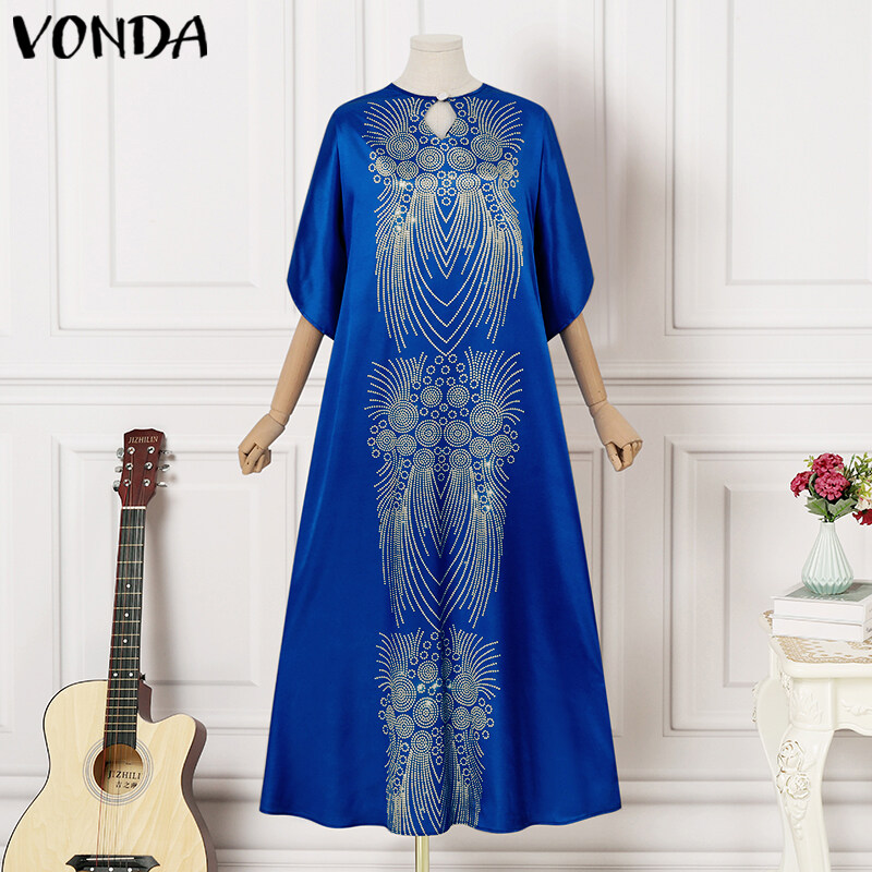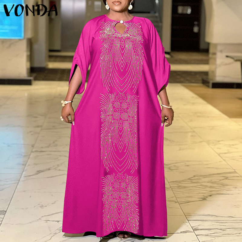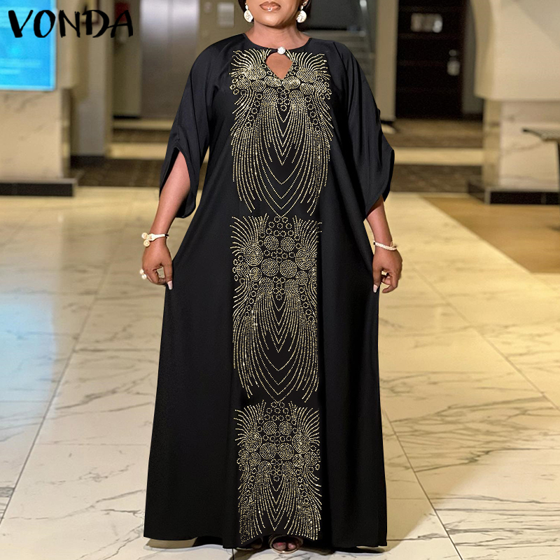 VONDA Womens Floral Printed Maxi Dress 3/4 Sleeve Ethnic Party Long Dress (Plus Size)