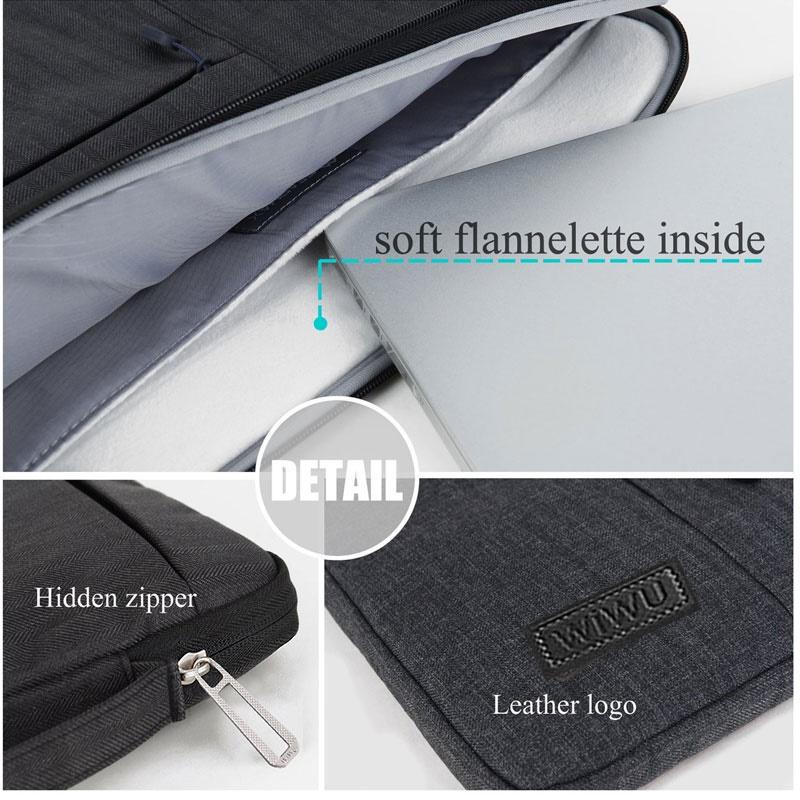 Shockproof fluffy fleece fabric lining, extra soft anti-static shockproof fluffy fabric, can effectively absorb impacts and reduce damages caused by accidentally bumping, and protects your notebook from scratches.