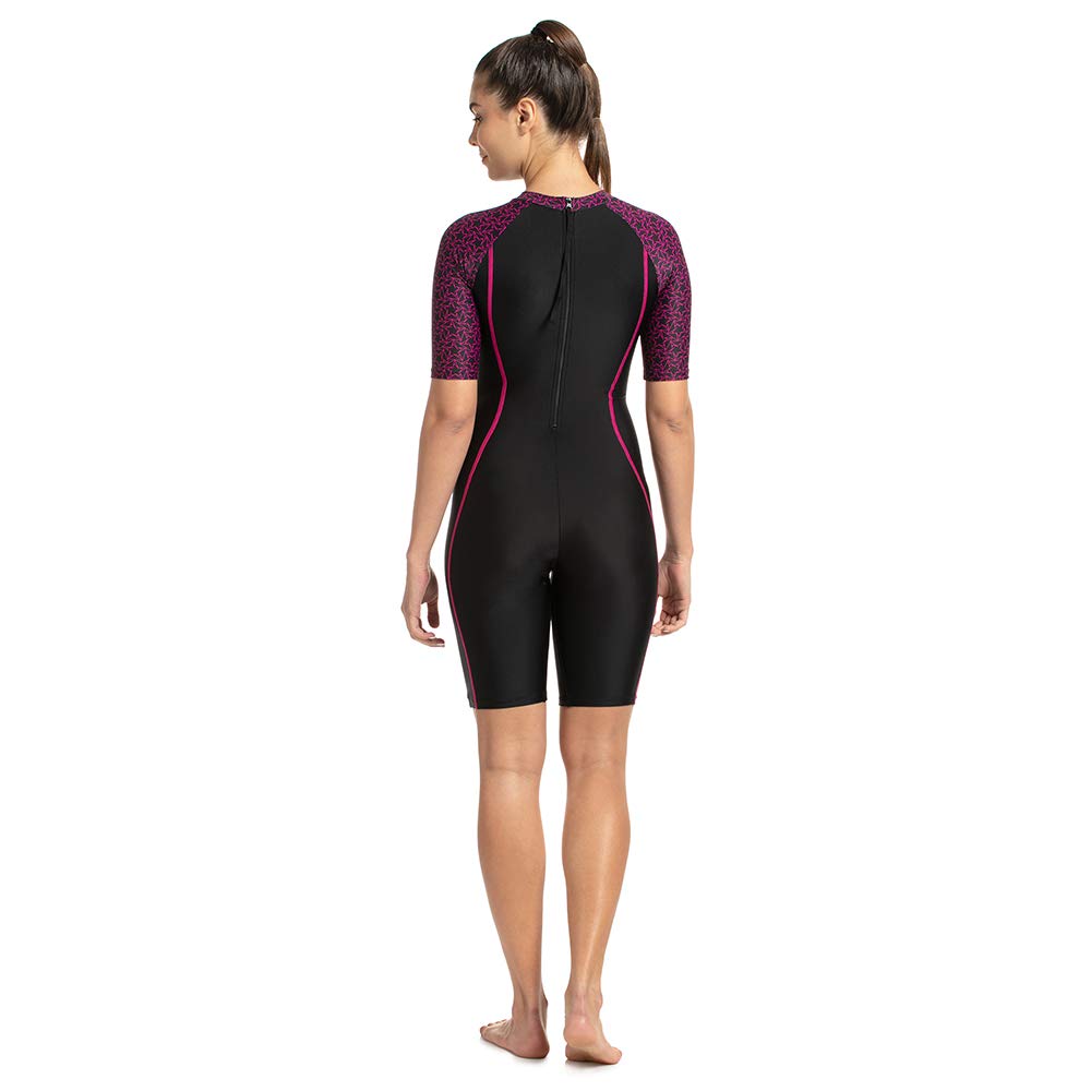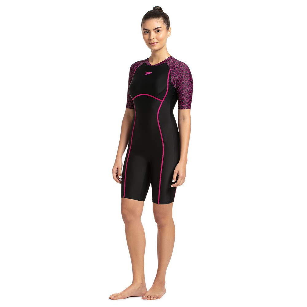 Speedo Swimwear Essential Splice Allover Kneesuit for Women (Color: Black/Black/Black/Elec.Pink)(Non-Returnable)