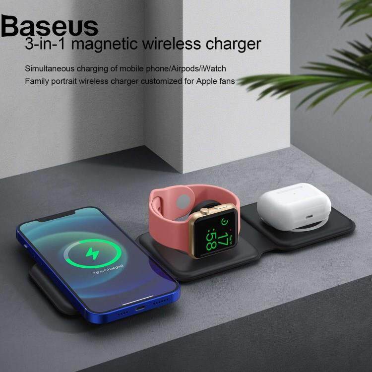Baseus YF-T9 3-in-1 15W Magnetic Wireless Charger Cellphone Smartwatch Earphone Fast Charging Dock Stand