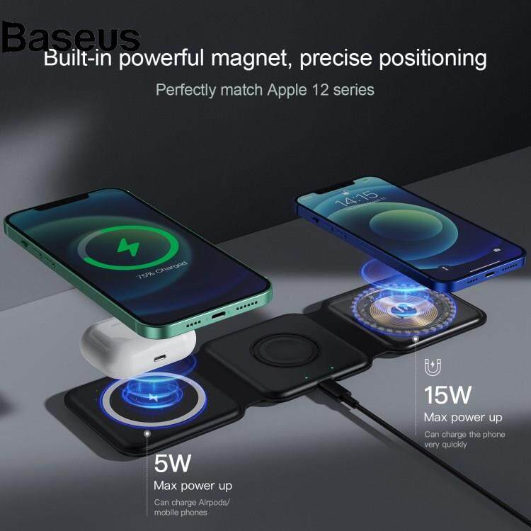 Baseus WC-07W 3 in 1 Magnetic Wireless Charger Foldable Charging Dock with Indicator Light