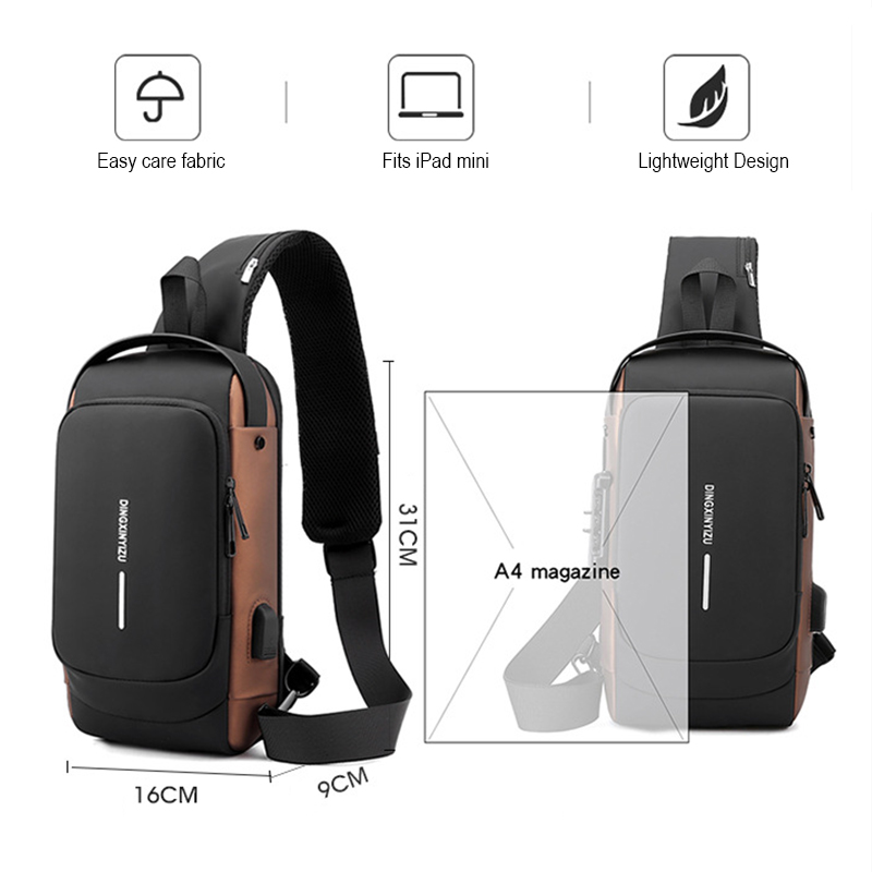 [SG Stock] Men's Chest Bag Large Capacity Waterproof Multifunctional Password Shoulder USB With Combination Lock Push Bag Sports Car Cool 单肩包男 胸包 腰包
