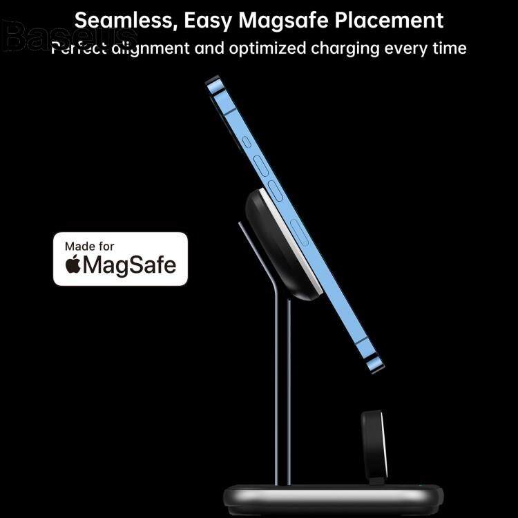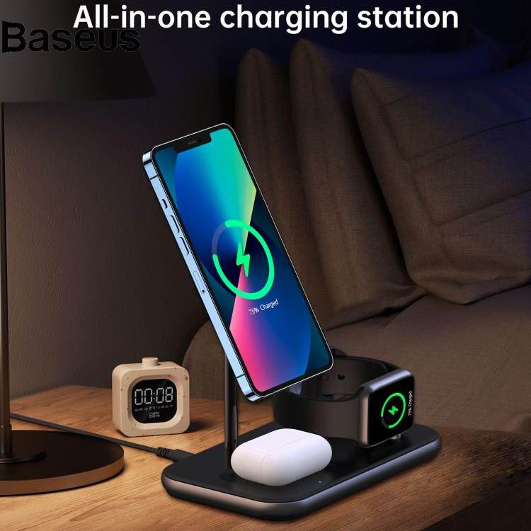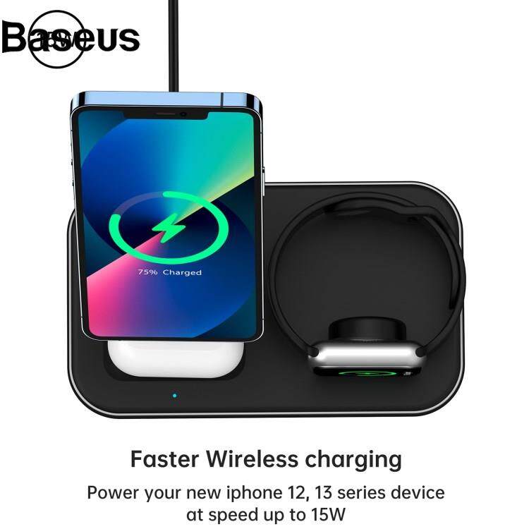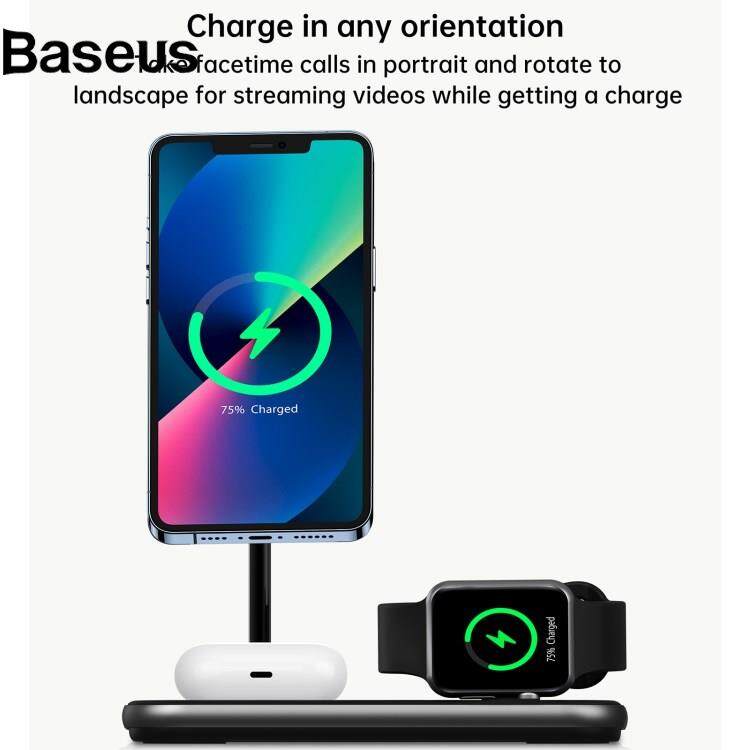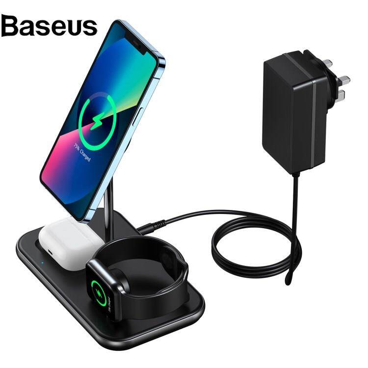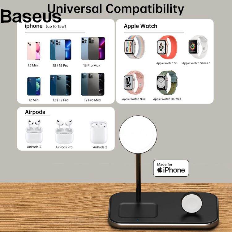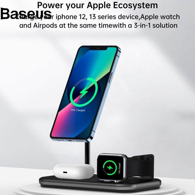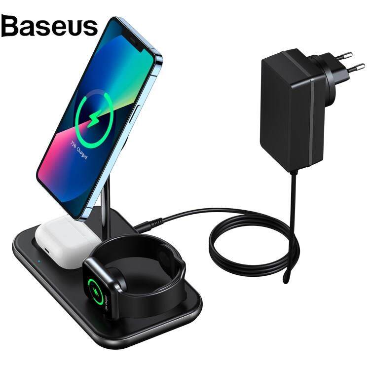 Baseus CHOETECH T589-F MFI & MFM Certified 3 in 1 Magnetic Wireless Charger Charging Station with 12V / 3A Power Adapter for iPhone / iWatch / AirPods
