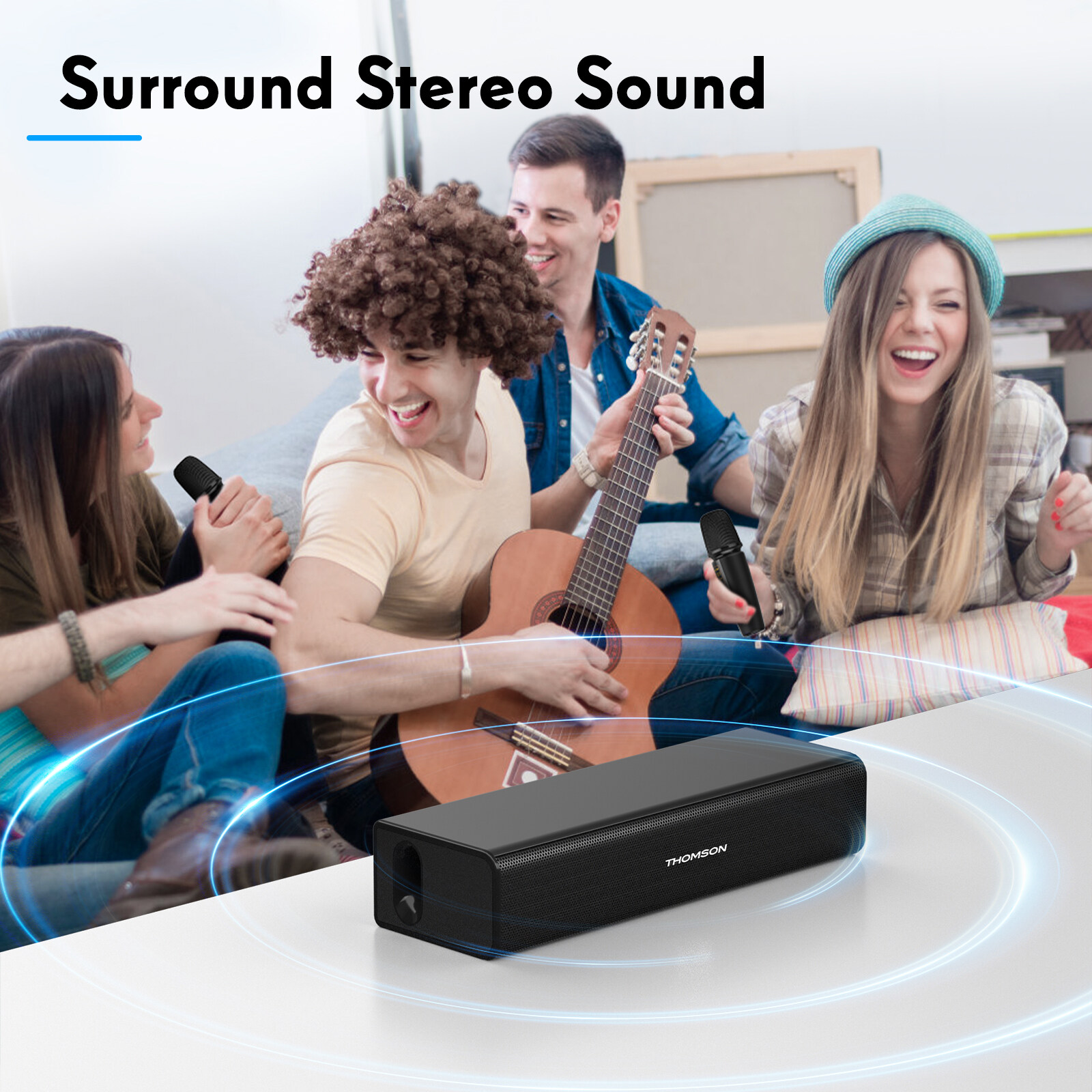THOMSON Portable Speaker With Karaoke Microphone Bluetooth, Wireless Outdoor Audio,Remote Control with 2 Wireless Microphones for Party