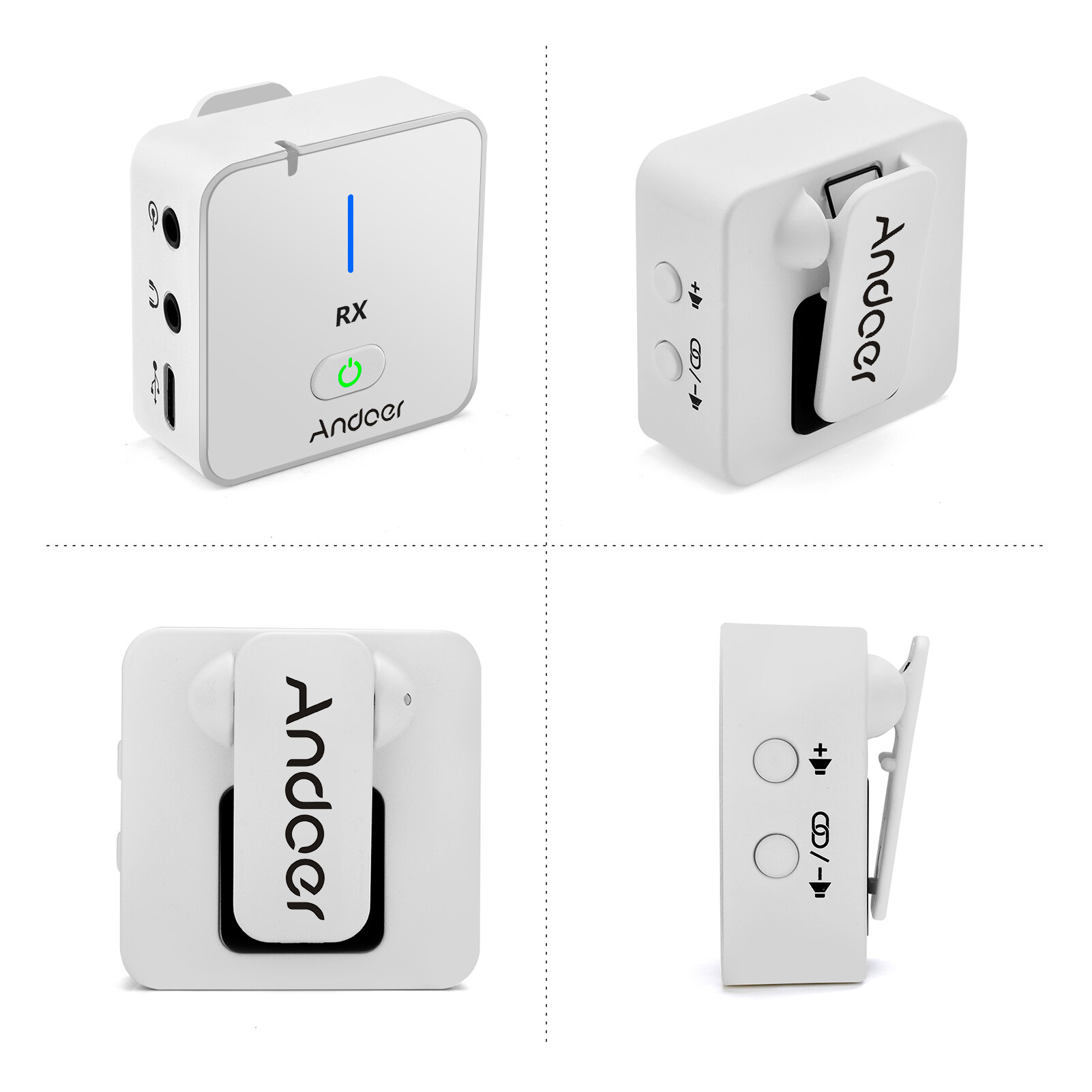 The receiver has real-time return monitoring interface, you can connect headphones to monitor the recording effect; backside clip design, can be fixed on collar easily and quickly.