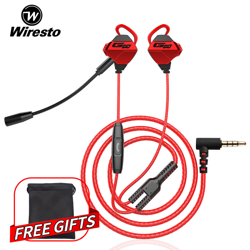 Wiresto Gaming Earphones with Mic In Ear Headphone? Wired Headset with DUAL Mic for Cellphone/Computer Earphone with Noise Cancelling Stereo Headphones for Mobile Phone PS4 New Xbox One Free Case
