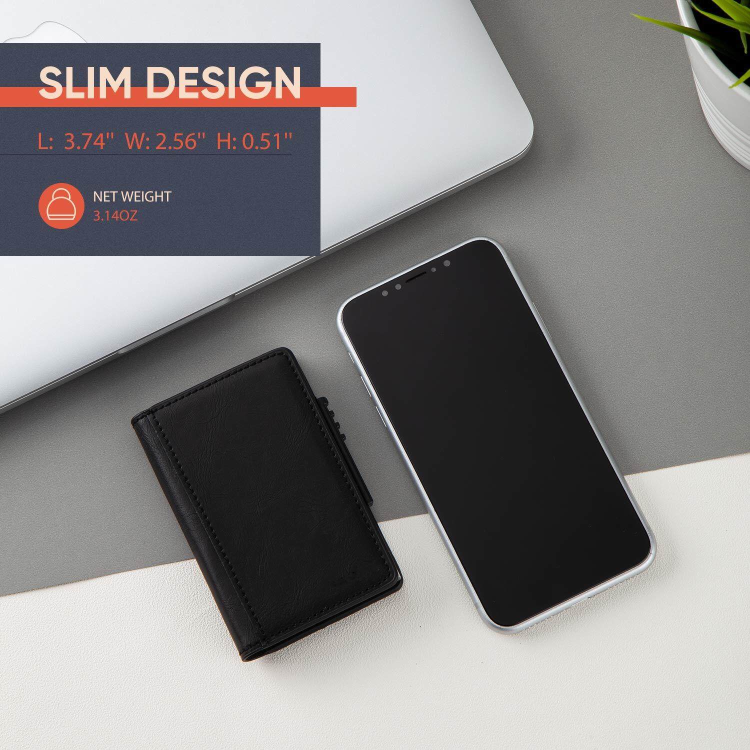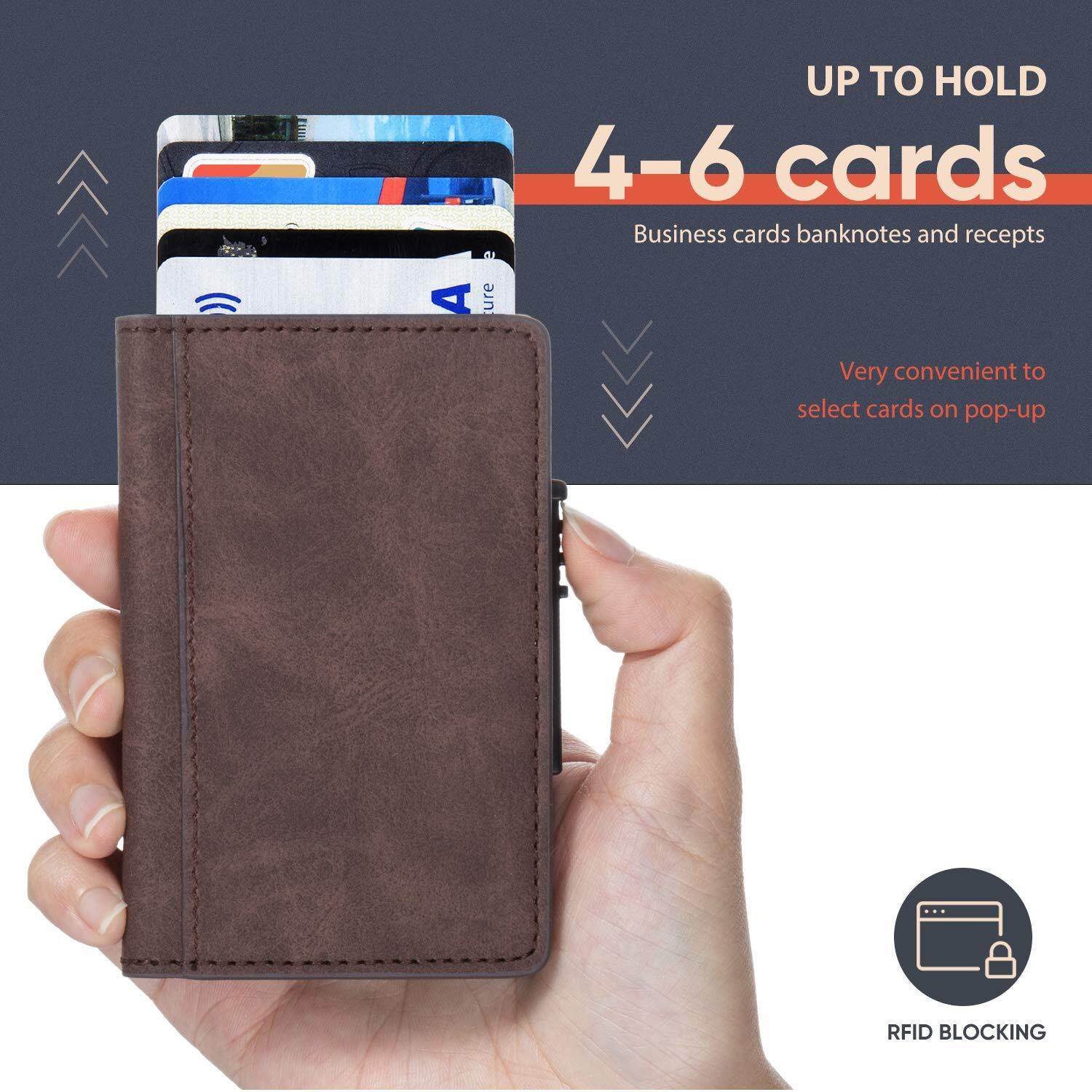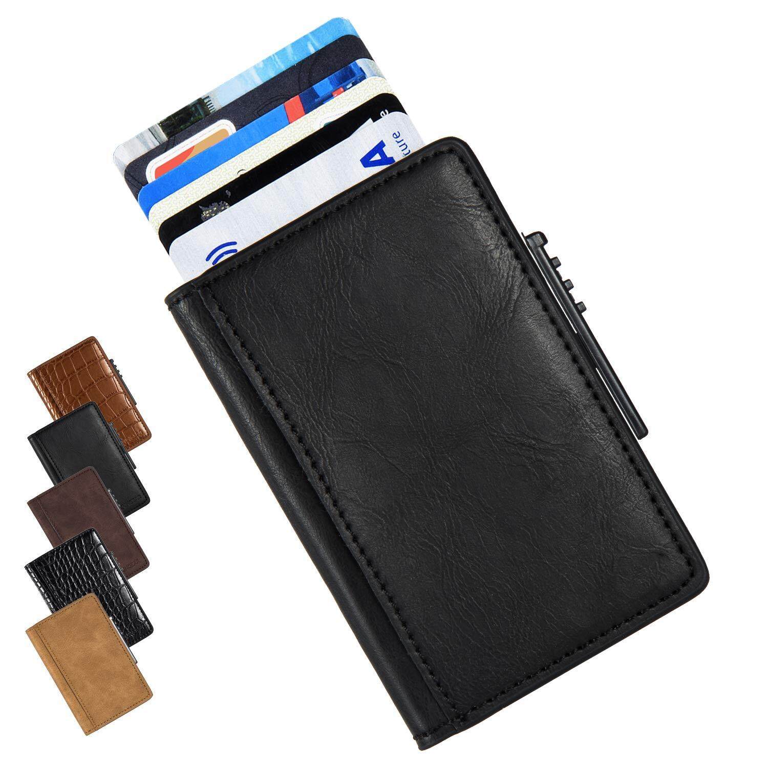 Smart Wallet RFID Blocking Men Credit Card Holder Anti Theft Card Holder for Men Wallets PU Leather Automatic Mini Slim Card Case Aluminum Metal Purse