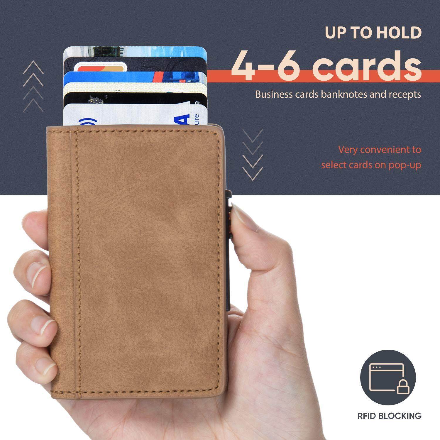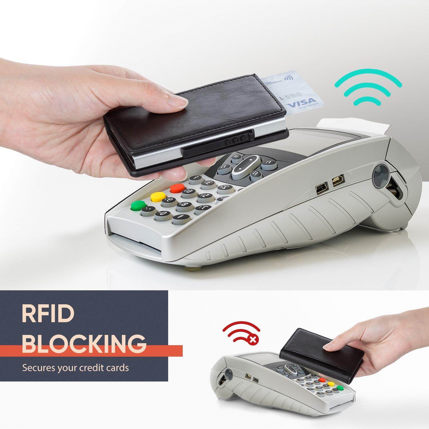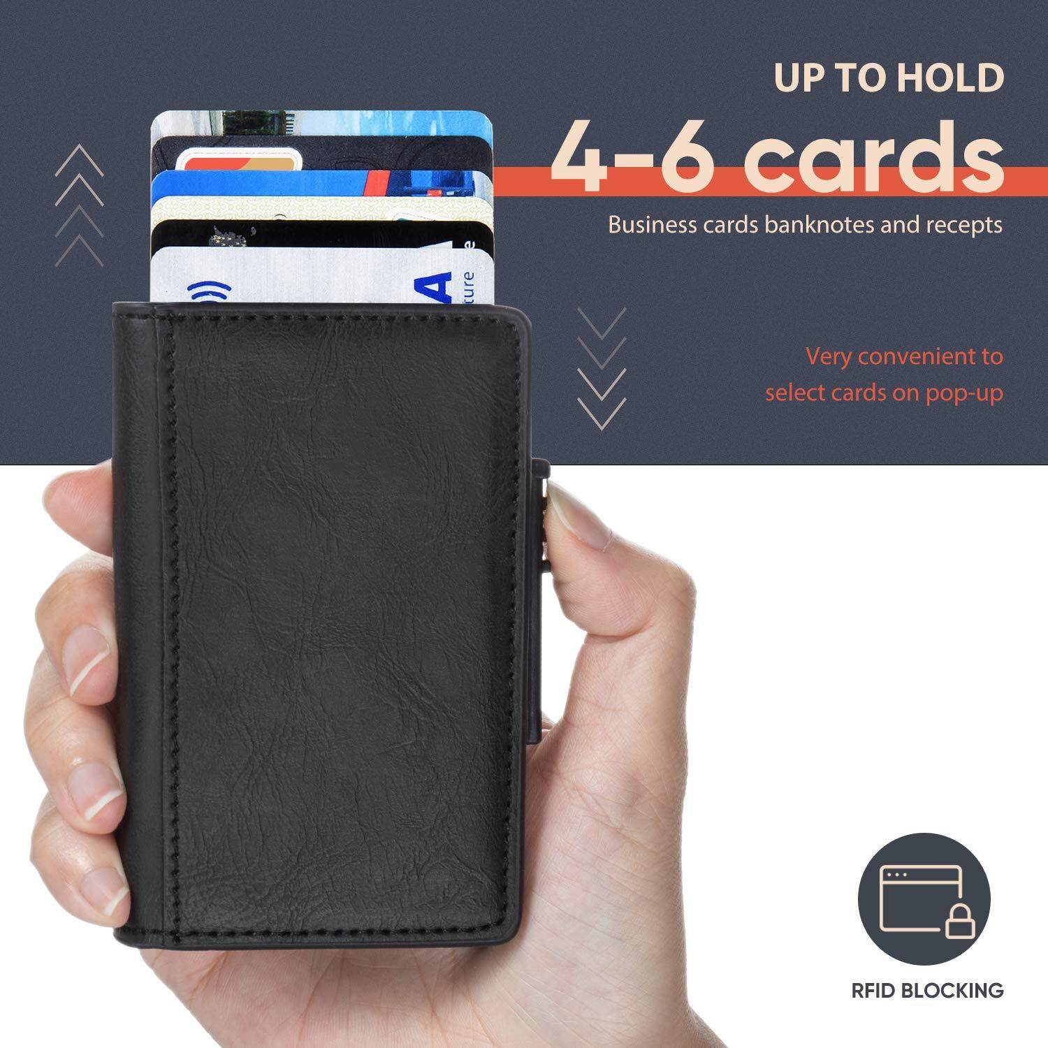Smart Wallet RFID Blocking Men Credit Card Holder Anti Theft Card Holder for Men Wallets PU Leather Automatic Mini Slim Card Case Aluminum Metal Purse