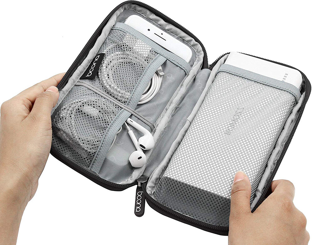 Lune Electronic Organizer Bag Power Bank Pouch 2 layers Large Capacity Storage Bag for Mobile power, Electronic Accessories USB Cable Charger Traveling Storage Bags