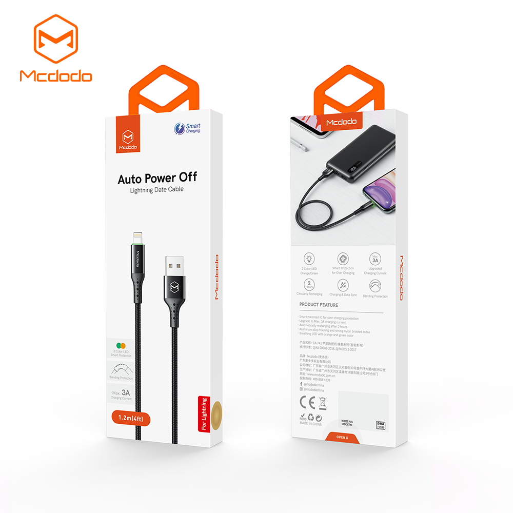 Mcdodo Auto Disconnect USB iphone Cable 3A Smart Power Off Fast Charge Cable Nylon LED USB Data Cord for Lightning iPhone 12 mini 12 Pro Max/ 11 Pro Max XS XR X 8 IPad IPod Fast Charging IOS 13 Charge